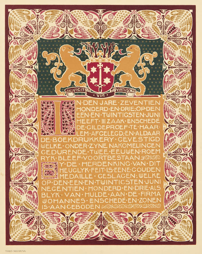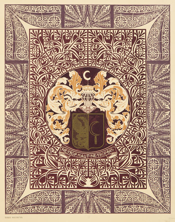 After these first experiments, Lion Cachet and other Dutch craftsmen managed to adjust the batik process so that it could also be applied to parchment. The Javanese decorating technique was used to decorate wall coverings, folding screens, bookbindings, charters, tablecloths, tea hats and much more. It became an important Dutch contribution to the new international style, which is now called Art Nouveau or Jugendstil.