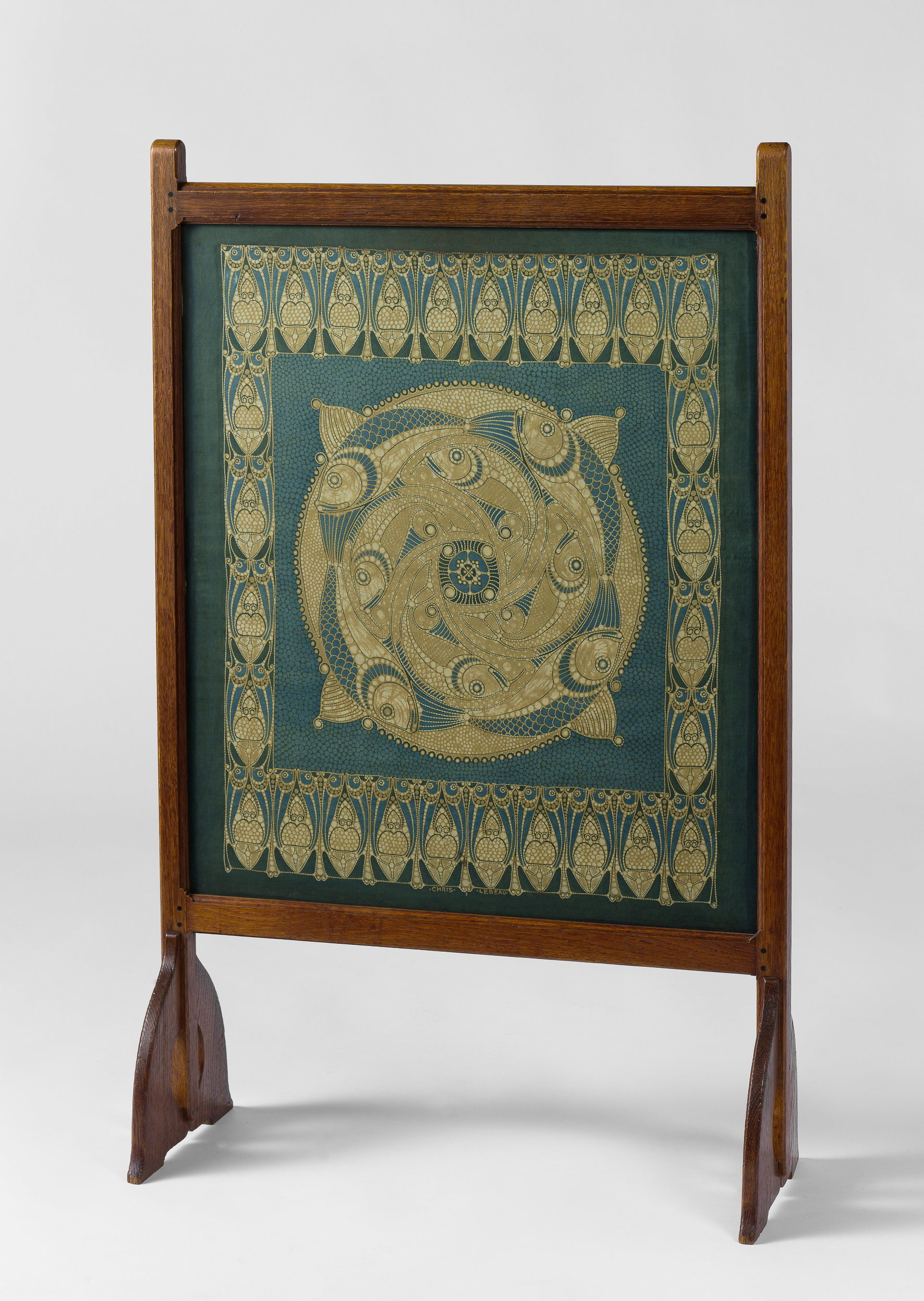 Chris Lebeau, approx. 1900-1902: batik fireplace screen with a geometric decor of stylized fish. (Rijksmuseum collection)