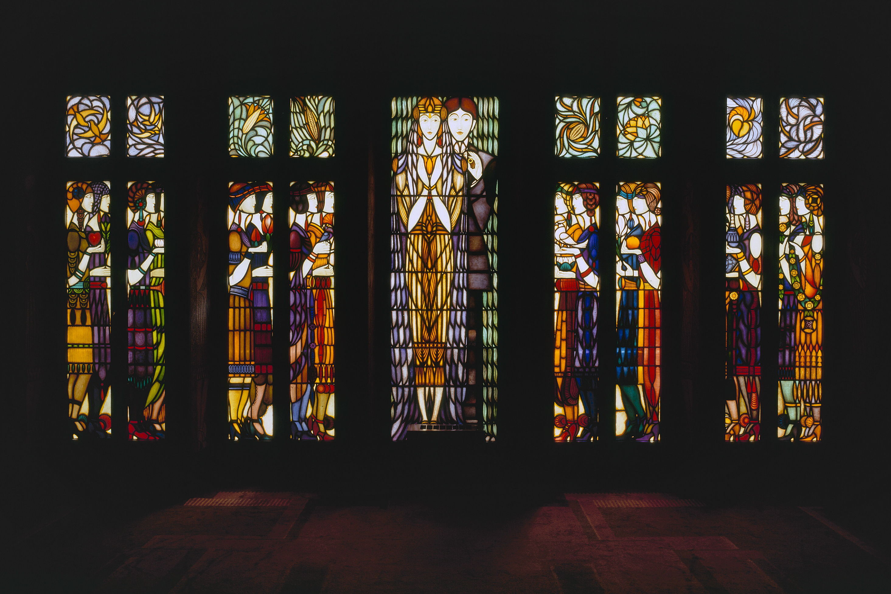 In 1914 Lebeau finally got the chance to visit the Dutch East Indies himself when the theater company Die Haghespelers, for which he designed the sets and costumes, toured Java. During this trip they also attended a wedding ceremony at the royal court of Yogyakarta. Lebeau later incorporated the impressions that he gained here into his designs for the stained-glass windows of the wedding room in the Amsterdam town hall.