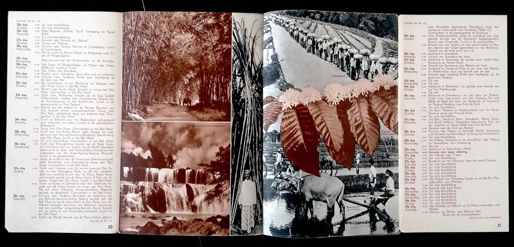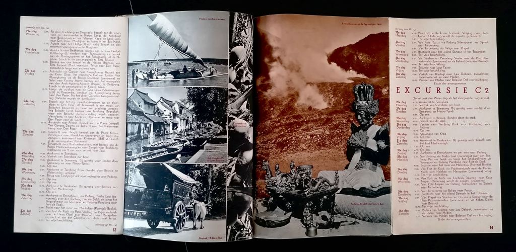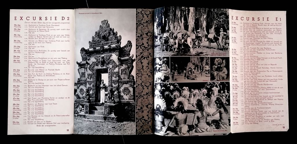 The Dutch East Indies offers tourists an infinite variety. In addition, Indonesian cordiality and unlimited hospitality await him. (…) Indonesia is part of the Netherlands. (…) But how little do we usually know about the people who work there and about the products that are grown there. Although many books have been written about it, and photos and movies have been made about it, there is only one way to really get to know the country; and that is to go there and see and experience it with your own eyes.