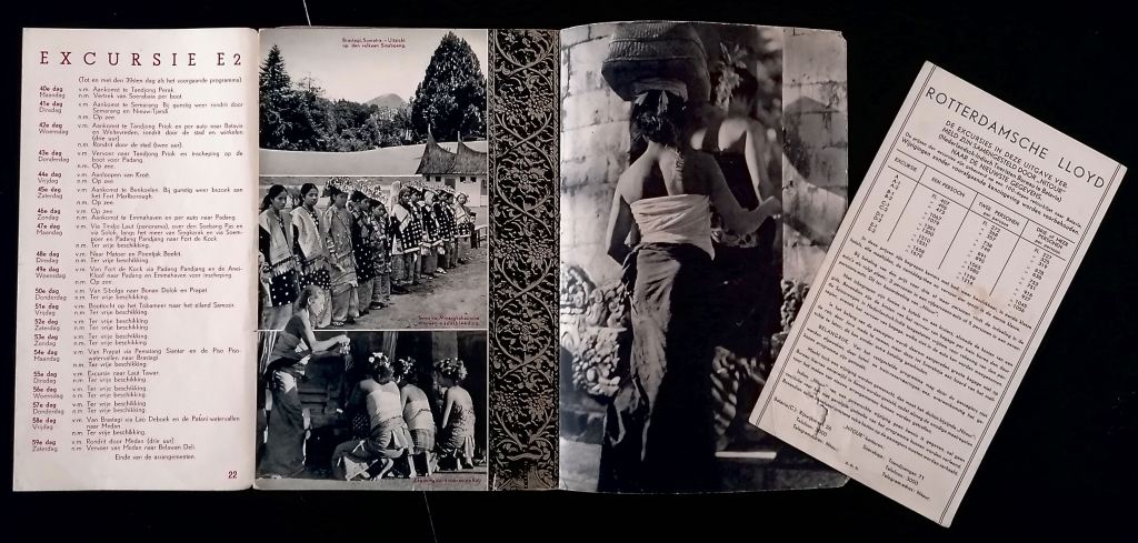 Did we Dutch inherit the wanderlust from our ancestors, who were once great seafarers and land explorers? We are certainly a travel-loving nation, but our tourism is mostly limited to the countries close to home. A Dutchman, who traverses his own country from East to West in just four hours, already considers a journey of 24 hours a major undertaking. The many fellow countrymen, who make a holiday trip on one of the beautiful mail ships of the Rotterdamse Lloyd, debark in Marseille. They are satisfied with ten days of sea and sun, a visit to Southampton and Lisbon and one glimpse of the East during the delay in Tangier. The descendants of Jan van Riebeeck and Jan Pieterszoon Coen rarely decide to sail further anymore. What a pity! I recommend any Dutchman who can afford a vacation of a few months (…) to sail on such a hospitable comfortable mail boat through the Suez Canal, the Red Sea and the Indian Ocean. Take a trip to the Dutch East Indies once in your life. Use a “hundred-day retour ticket” to get to know the Dutch colonies as a tourist, that beautiful and fascinating country which is “Our East”! You will see a new, unbelievably interesting world… You will widen your horizons tremendously… It will be one of the most wonderful experiences of your life and a wonderful memory until the end of your days.