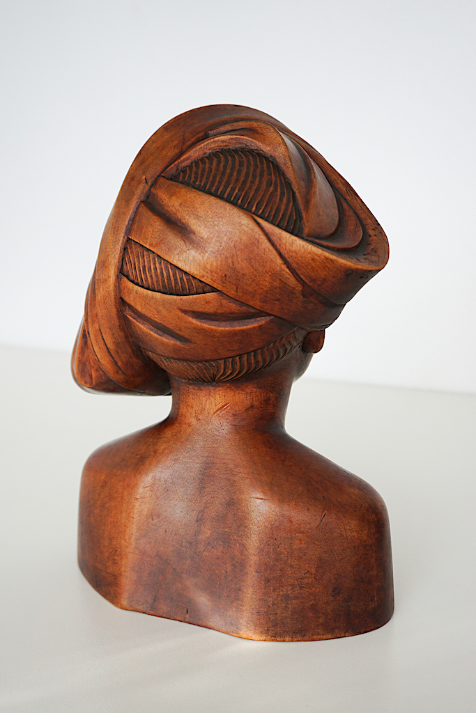 The trick is to find a nice early specimen like this one. Especially wood carvings from before and just after the war (until the mid-1950s) often have a beautiful serene facial expression. Later busts are usually somewhat larger and more decorated, but lack that sophisticated natural look.