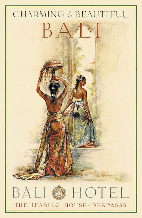 Besides wood carvings I also collect old printed matter about the Dutch East Indies, Indonesia and Bali in particular. This 1940s luggage tag is one of my finest finds. The label was used on the ships of the Koninklijke Paketvaart-Maatschappij (KPM) to indicate which suitcases were destined for the Bali Hotel in Denpasar. This hotel, owned by the shipping company, was the first major tourist accommodation on the island. It was opened in 1928 and built on the site of the 1906 Badung puputan. Today the hotel still exists, holding a different name: Inna Bali Heritage hotel.